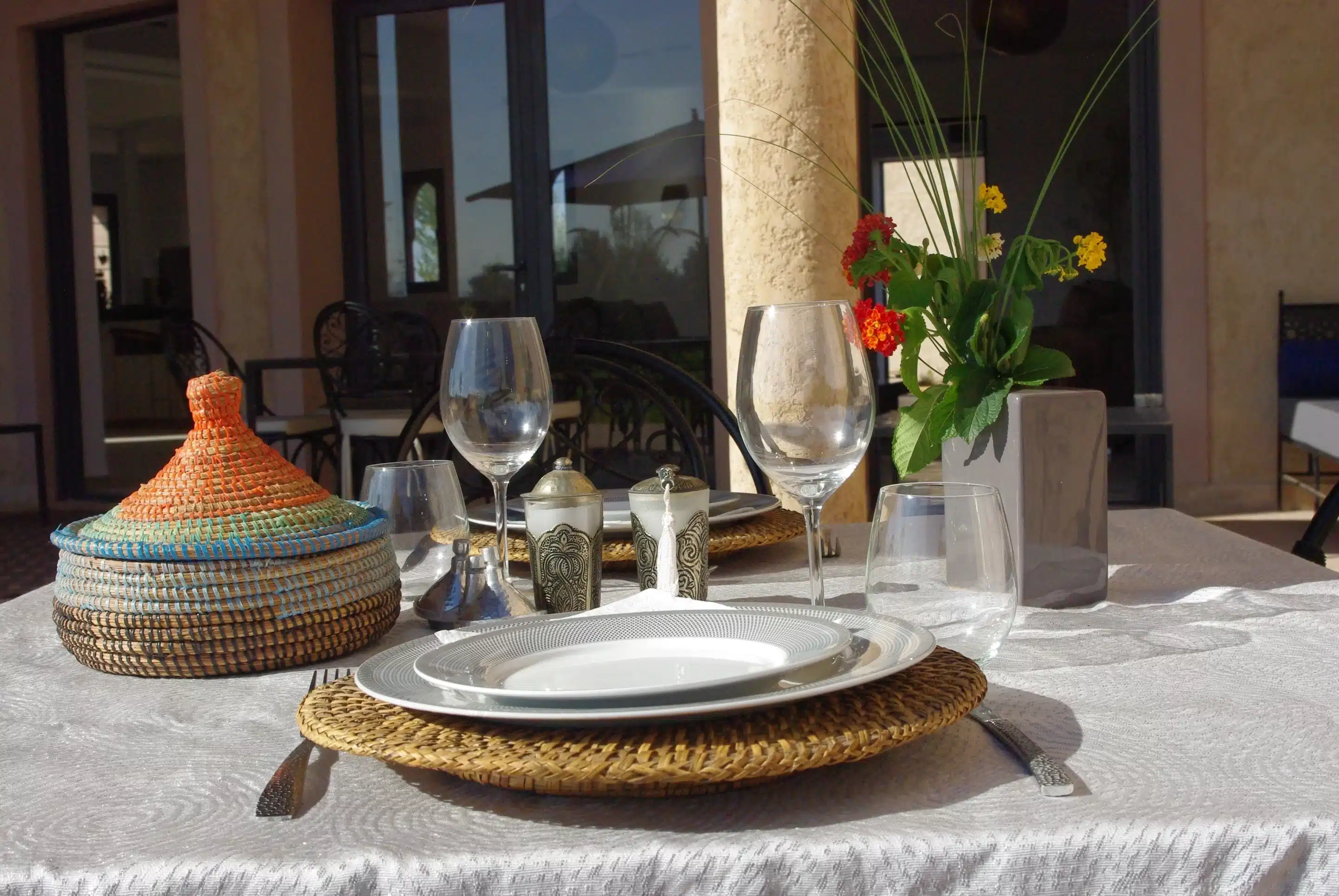 Nous vous proposerons chaque jour aux repas un menu différent en fonction des arrivages du potager ou du marché, de l’inspiration du moment ou de vos envies, des plats typiquement marocain (salades, couscous, tajines, kefta, brochettes…).